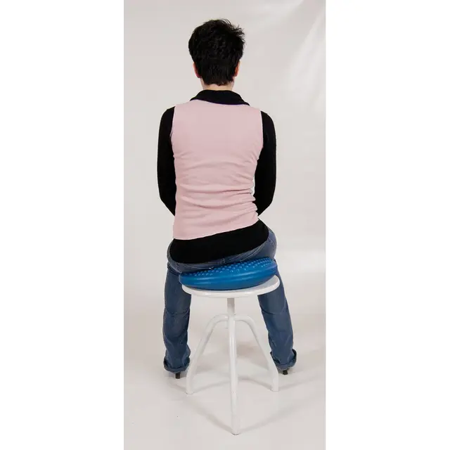 Balanseputen Disco Sit har destabiliserende effekt og fremtvinger bevegelse i ryggen samt at musklene styrkes.